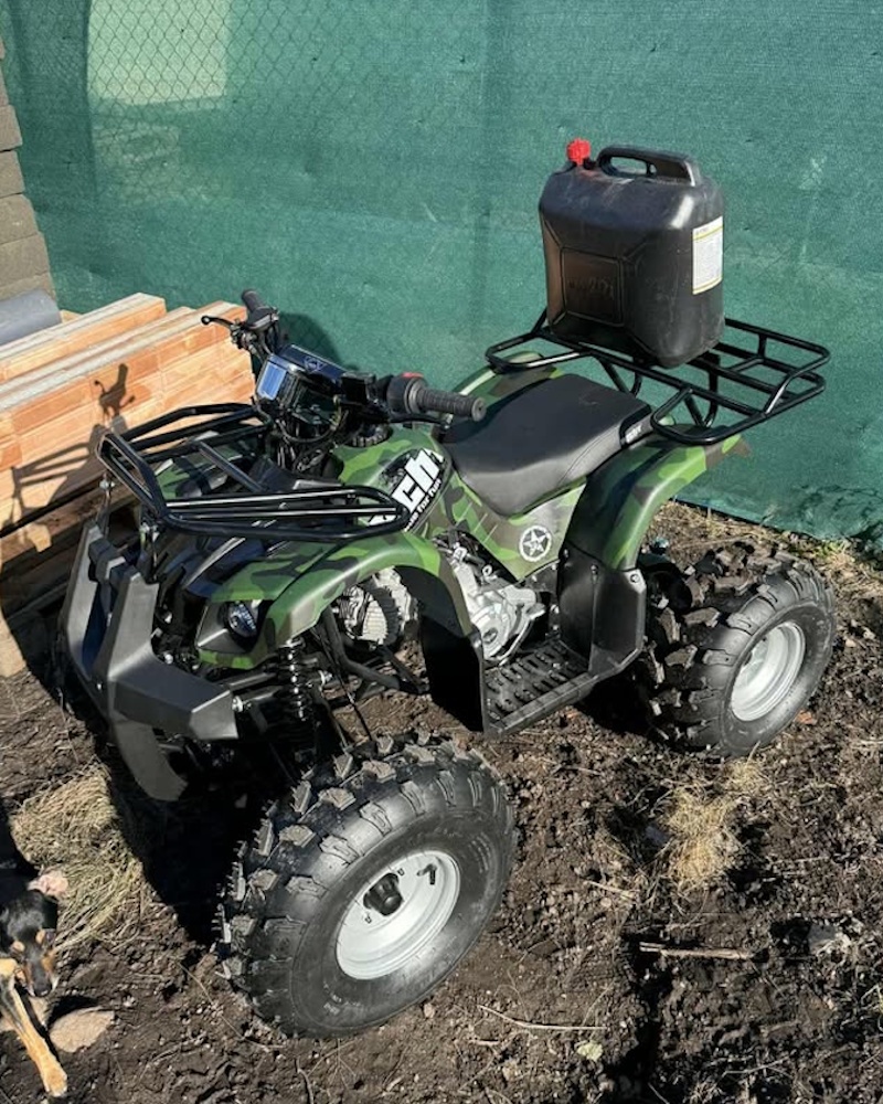 chtěla bych Vás požádat o pomoc při pátrání po čtyřkolce značky Hecht v zelené kamufláži v hodnotě 27 tisíc korun. Zloděj nebo zloději včera, tedy v úterý 9. prosince, otevřeli vrata a z pozemku nám odtáhli čtyřkolku. Trvalo jim to pouhých deset minut mezi 11:40 a 11:50.