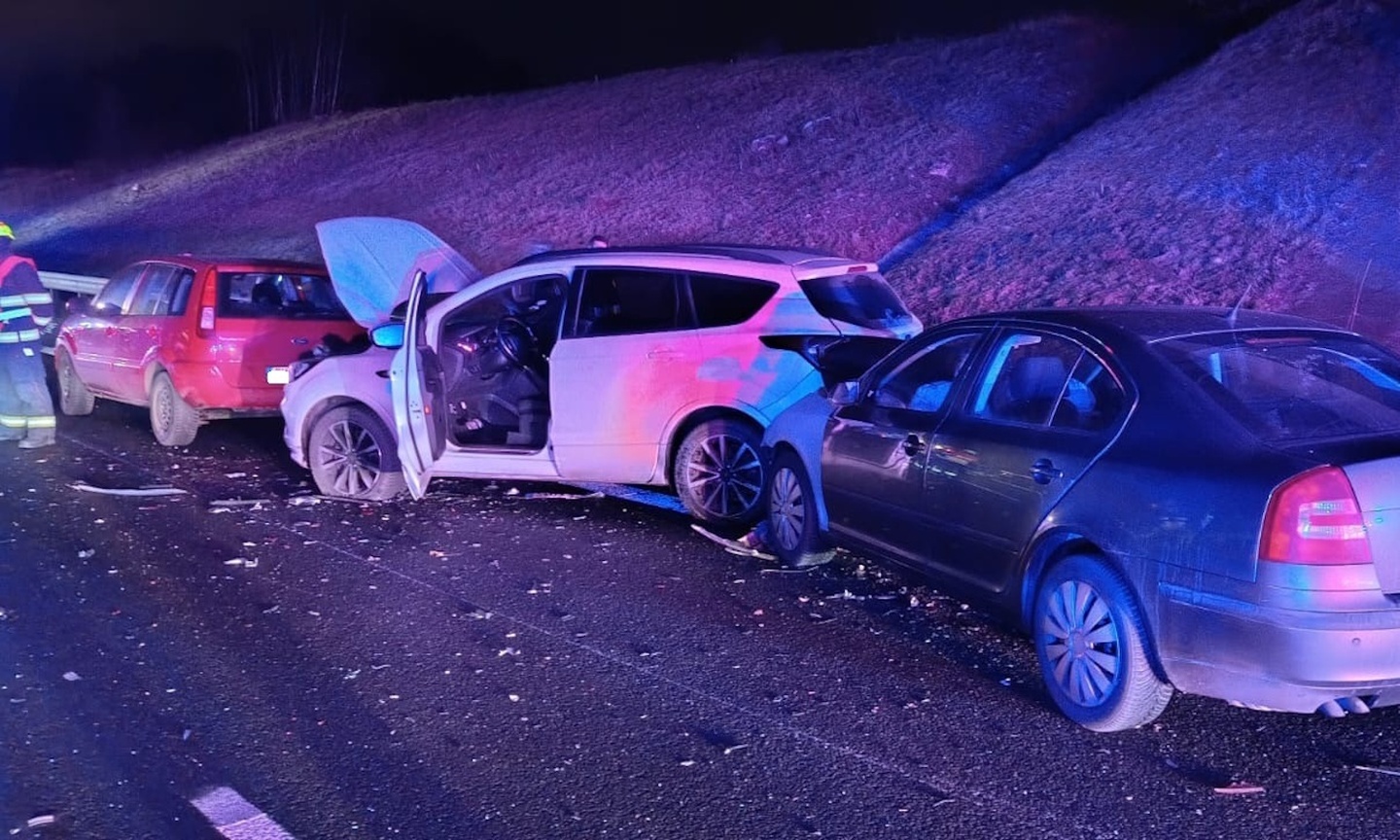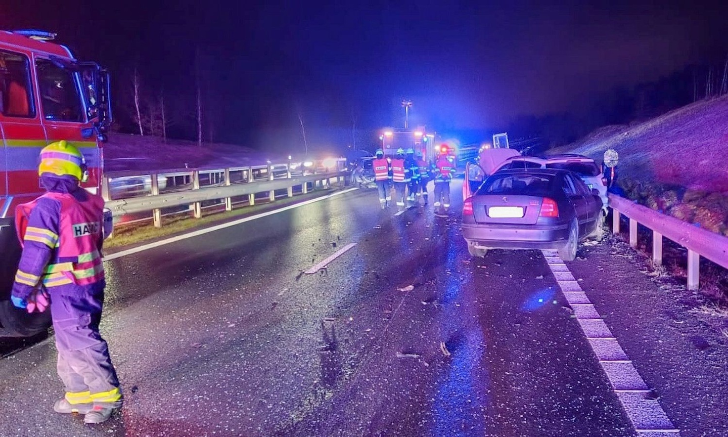Včera v půl sedmé večer došlo na silnici I/13 vedoucí z Karlových Varů směrem na Ostrov u Všeborovic poblíž čerpací stanice k hromadné dopravní nehodě, během níž se střetla čtyři vozidla.