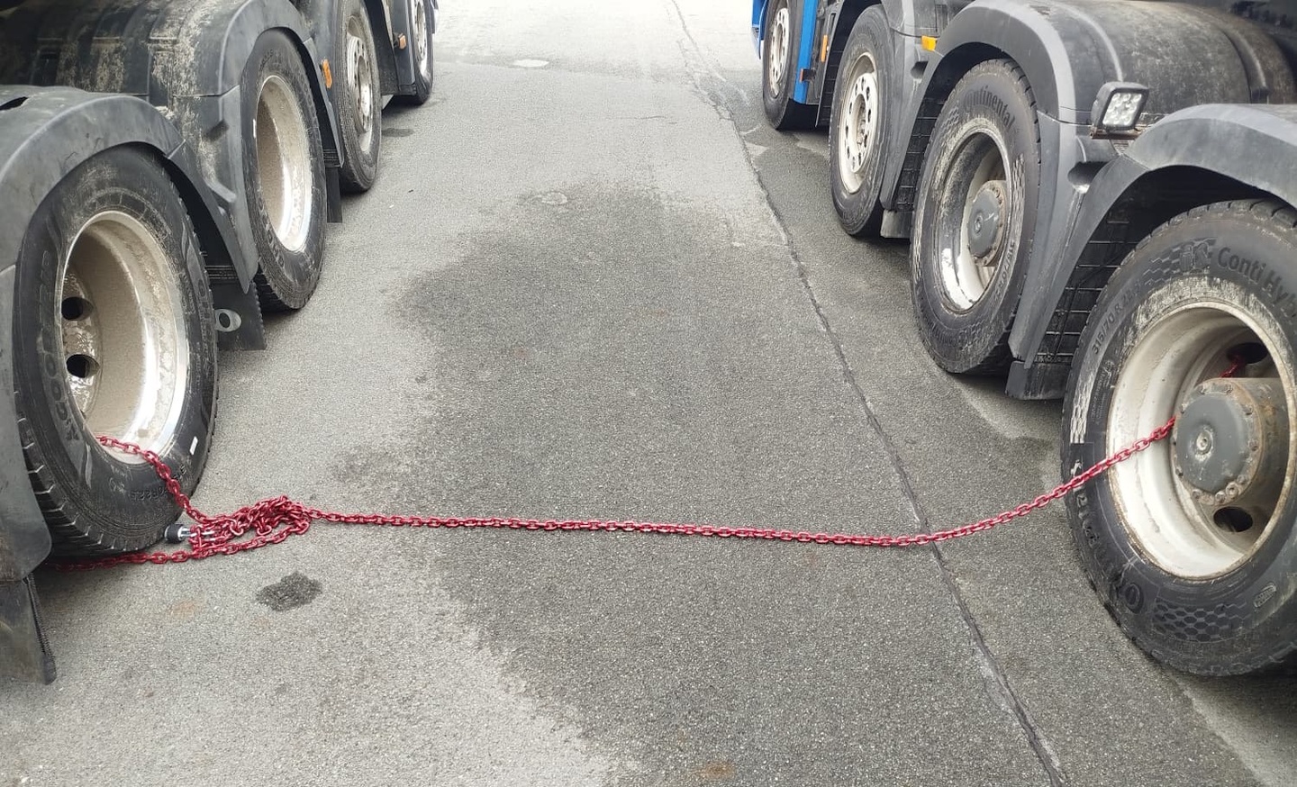 Teprve včera, po zaplacení a dodání patřičných povolení, inspektoři řetězy ze souprav odstranili a kamiony mohly pokračovat v cestě.