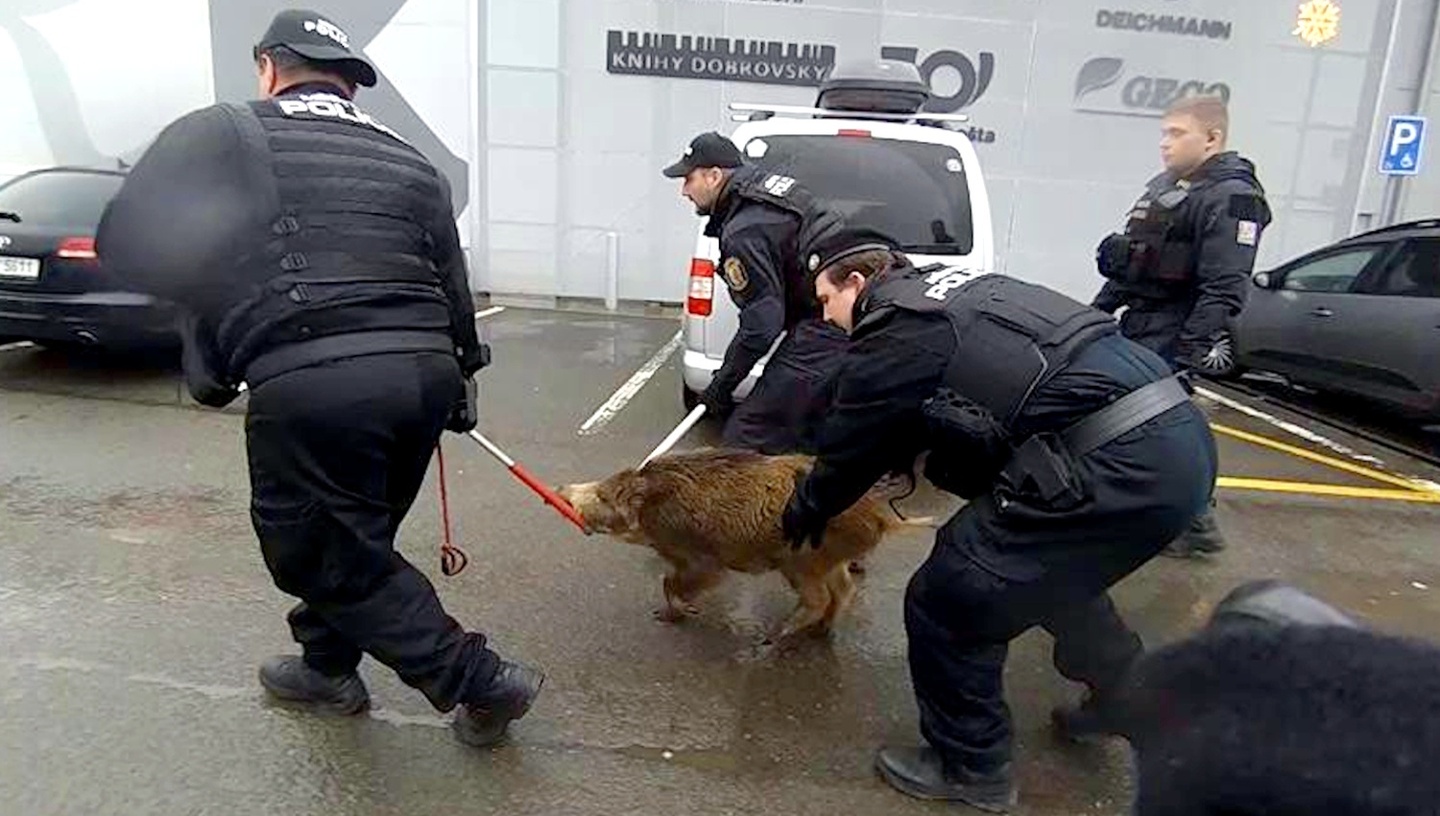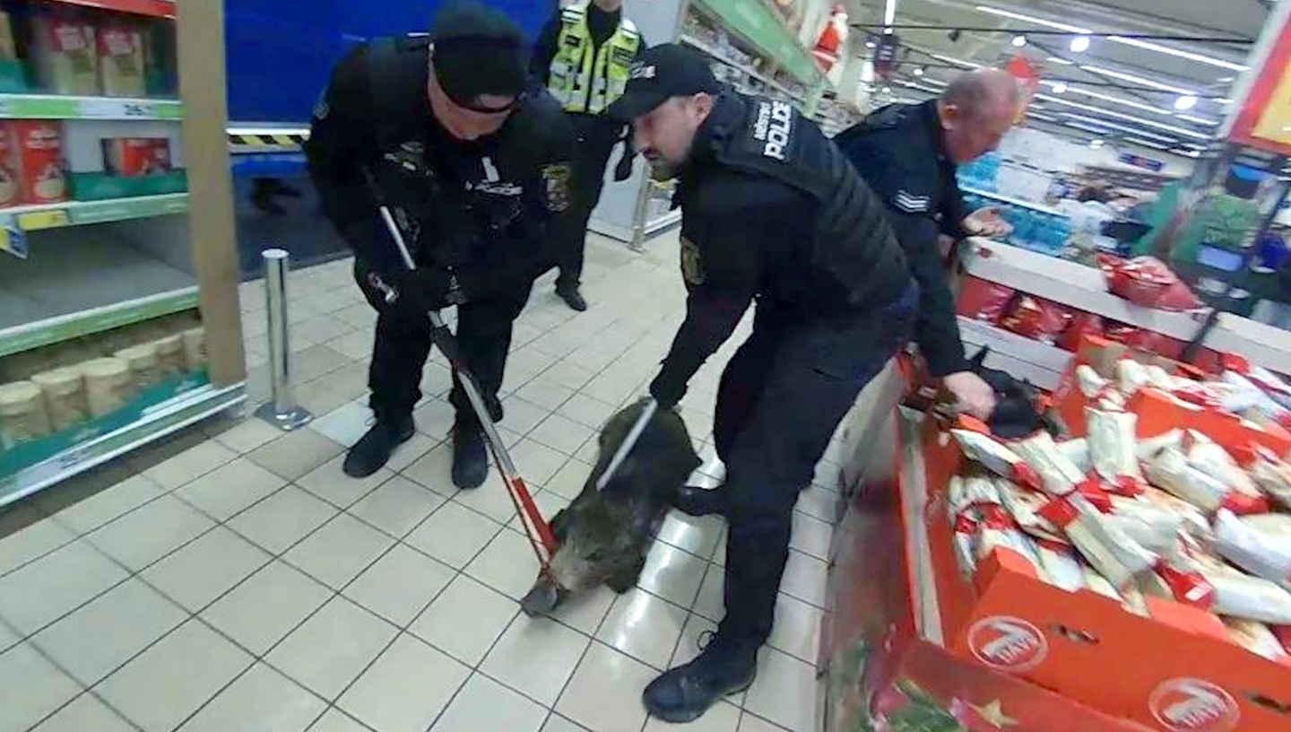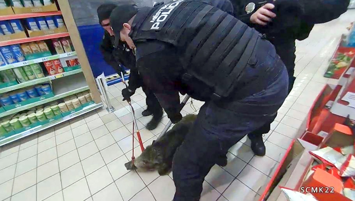 V sobotu po jedenácté hodině dopoledne vyjížděli policisté společně se strážníky městské policie z odchytové skupiny do Tesca v Plzni na Rokycanské třídě k prověření opravdu nezvyklého oznámení. Na tísňovou linku se totiž obrátilo několik lidí s informací, že po obchodě běhá divočák.