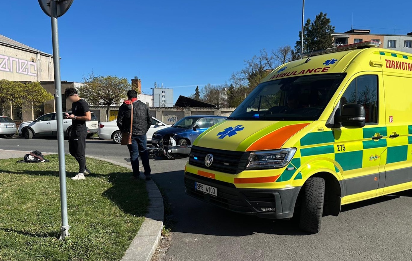 Ještě před příjezdem policistů procházel kolem policista mimo službu, který na místě pomohl s usměrňováním dopravy.